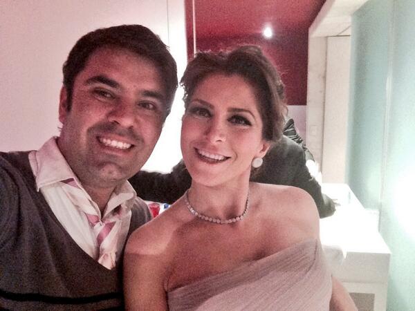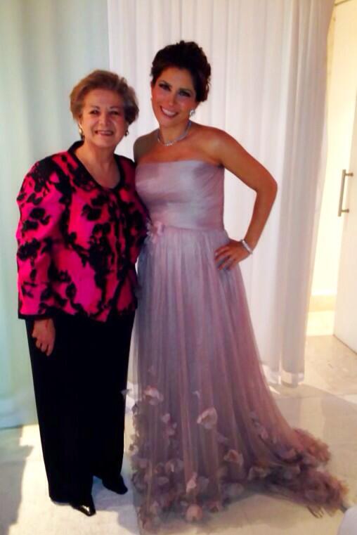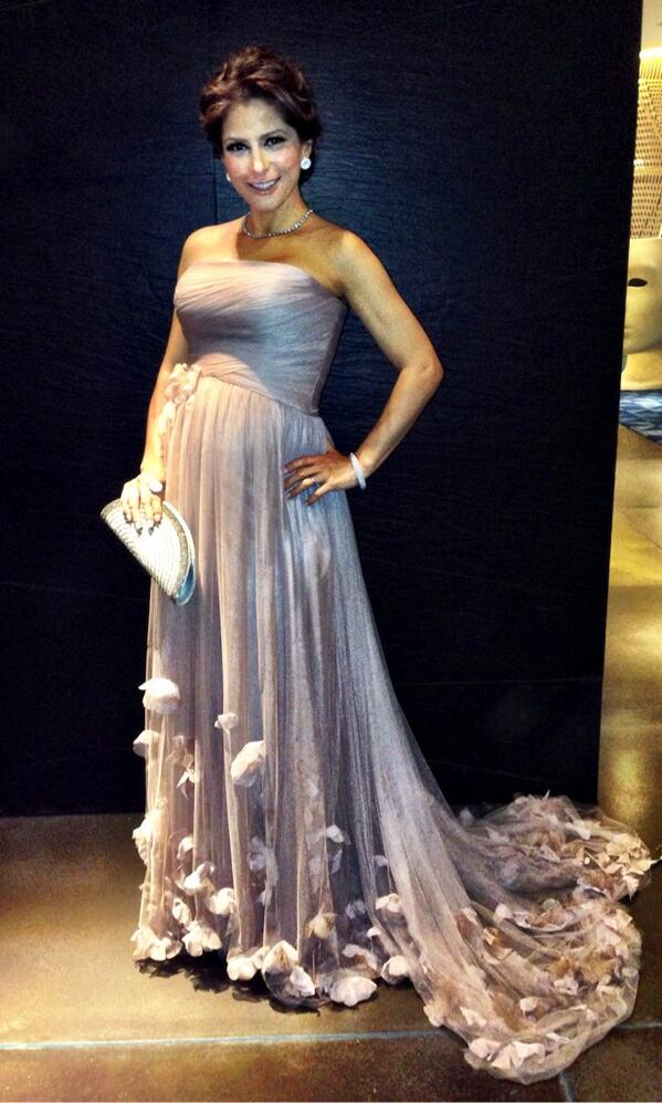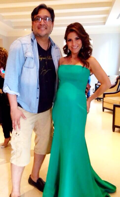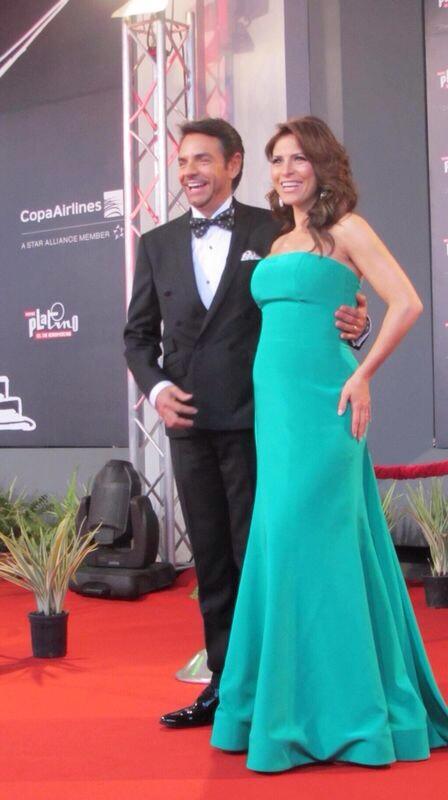 La actriz acompañó a su marido Eugenio Derbez a recoger su premio Diosa de Plata en la Ciudad de México, para esta ocasión eligió un vestido premamá strapless rosa palo con moño en la cintura y aplicaciones de flores en el ruedo de Pronovias, joyas y clutch plateado del diseñador Daniel Espinosa, maquillaje en tonos rosas y el pelo recogido en un moño desenfadado.